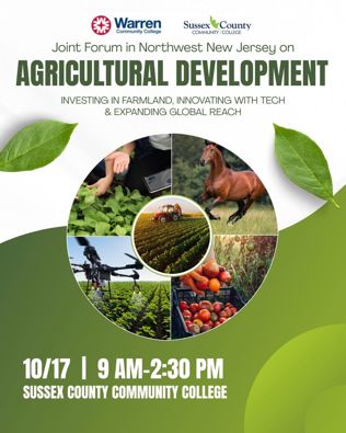 Northwest New Jersey’s agricultural future will be in the spotlight at the Joint Forum on Agricultural Development, a one-day event presented by Sussex County Community College and Warren County Community College.
